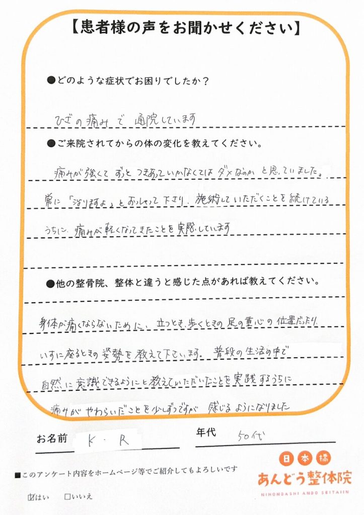 当院では、他治療院で原因を判断されなかった膝の痛みの改善例が多数あります。